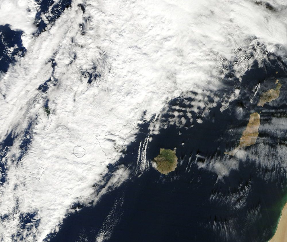 Visión del frente: Imagen del satélite MODIS Las consecuencias más importantes en Tenerife se daban en el municipio de Garachico, NW de la isla, donde el túnel se convertía en un auténtico río de agua (TF-42) como podemos ver en algunas imágenes que han circulado por la red durante el día de ayer: