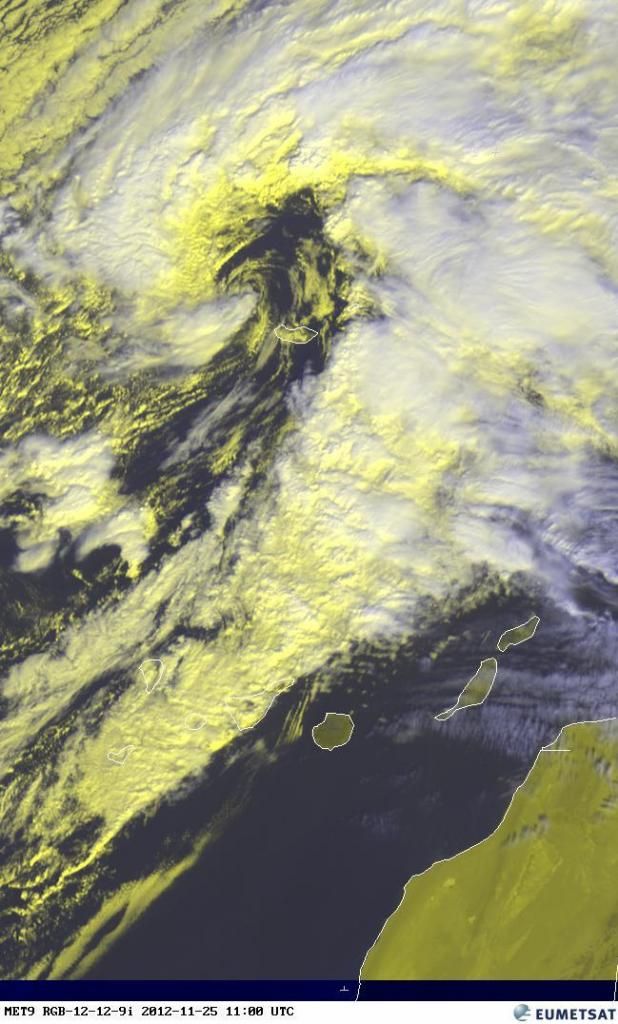 El vórtice de la borrasca justo sobre Madeira, Imagen del satélite EUMETSAT